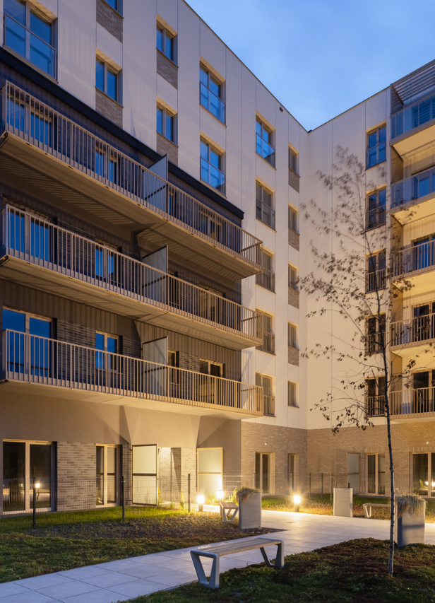 Minimalistyczną architekturę osiedla uzupełniają ceglane akcenty, które nawiązują do industrialnej Łodzi i ocieplają prosty w formie design. Zaprojektowane tak, żeby mieszkało się wygodnie, funkcjonalnie, bezpiecznie i miło.