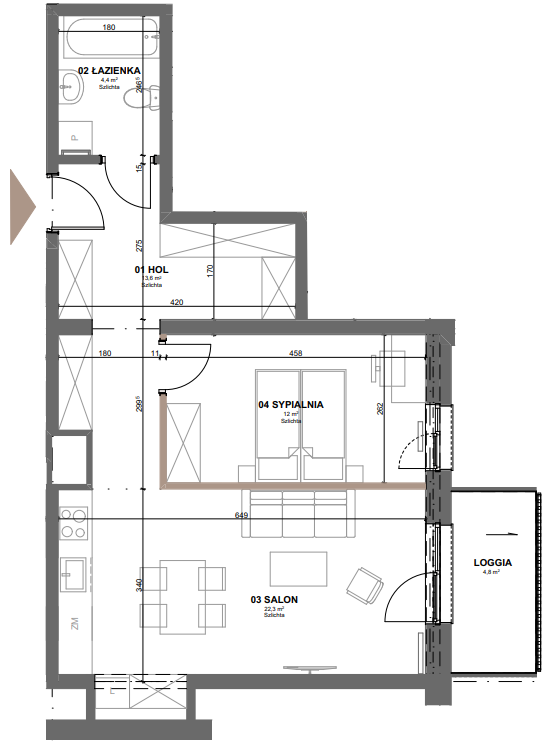 46 - 3 pokoje49.69m²