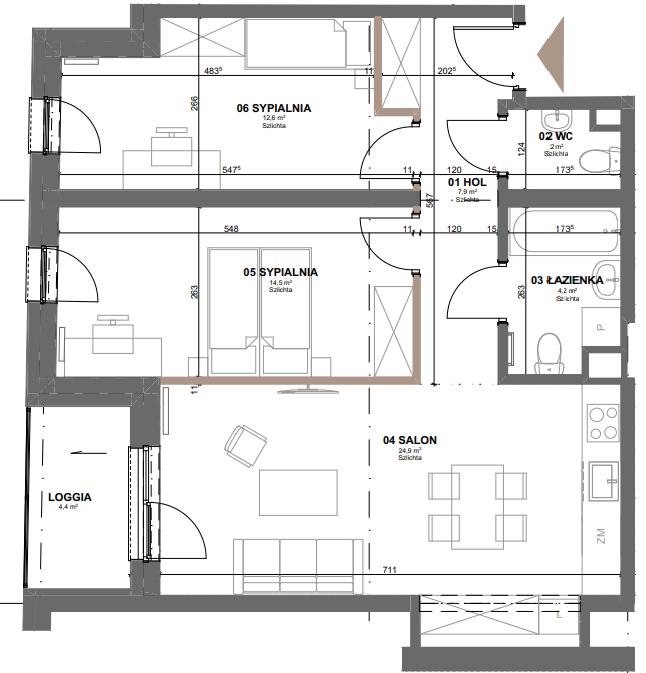 - WC 2.06 m²