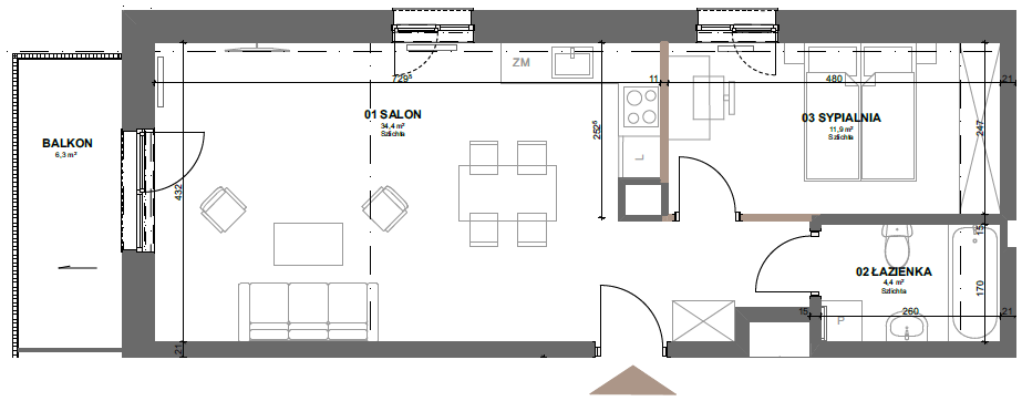 46 - 3 pokoje49.69m²