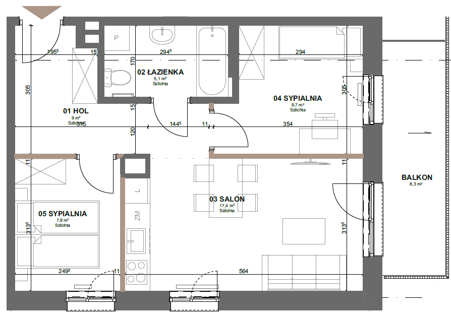 46 - 3 pokoje49.69m²