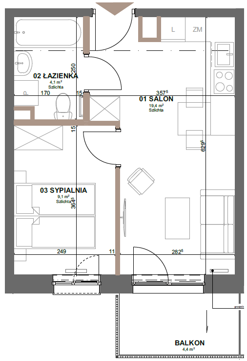 • Salon 19.34 m²